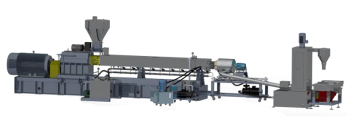 該系統通常包括模頭,切粒小車,旋風分離、振動輸送等。